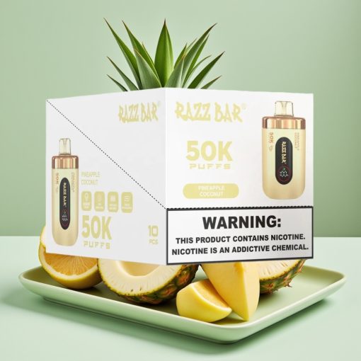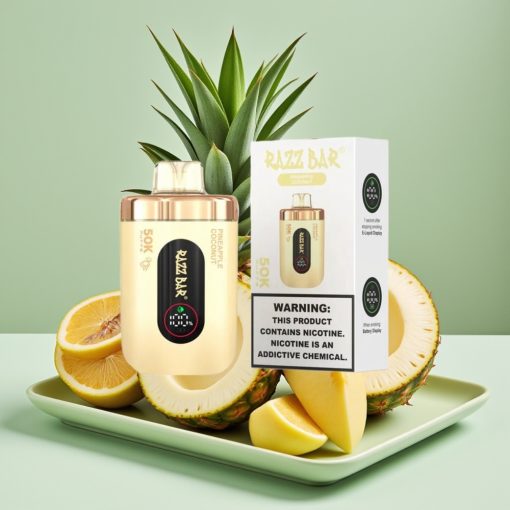 vape grossist Sverige Razz Bar 50K Puffs Engångsvape Ananas Kokos Med 1.0 Ohm Mesh Coil
